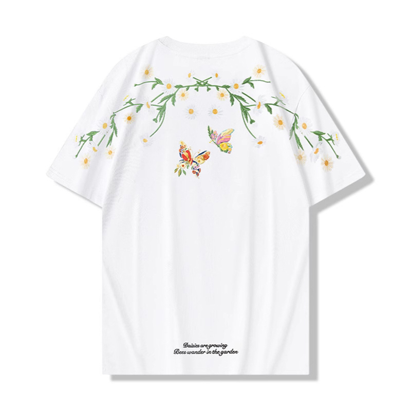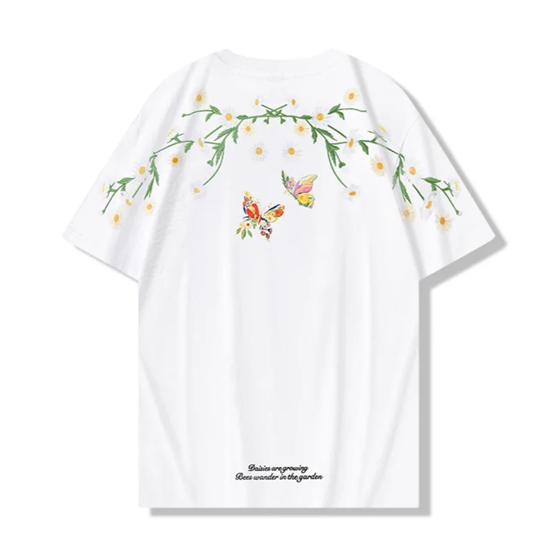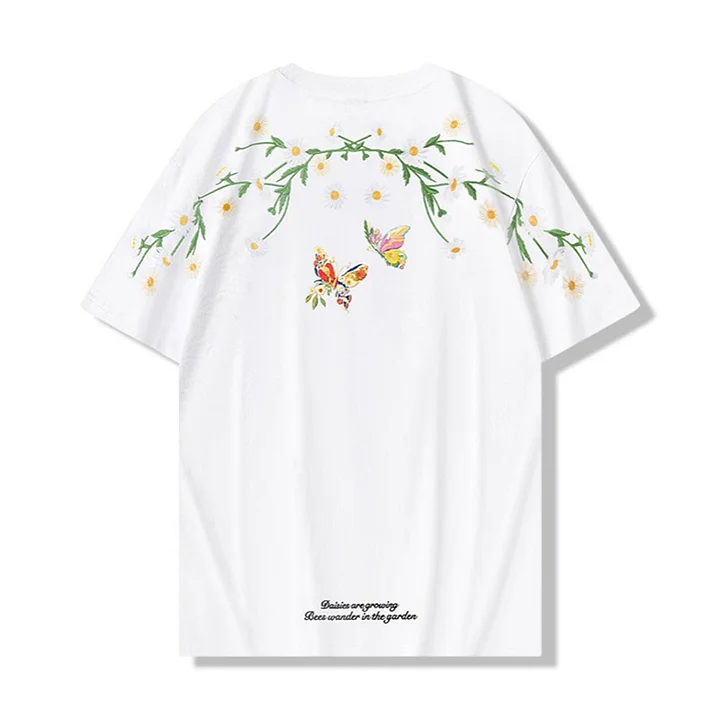 Embroidered Butterfly With Flower Ukiyo-e T-shirt