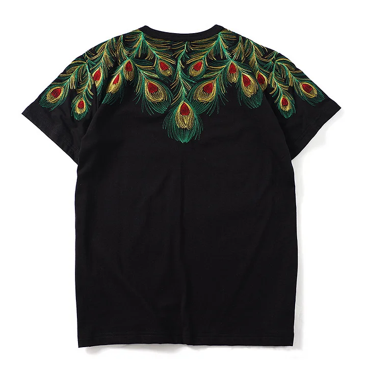 Embroidered Peacock Feathers Art T-shirt