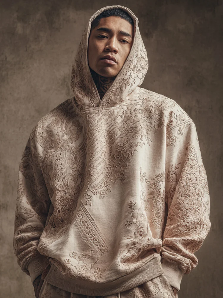 Men's Casual Retro Bohemian Embroidered Print Hoodie