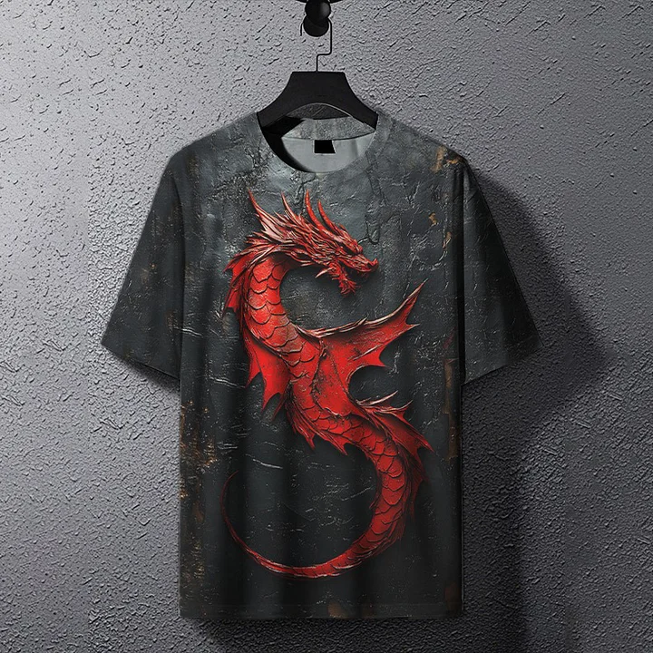 Men's Red Dragon Art Print Casual T-shirt