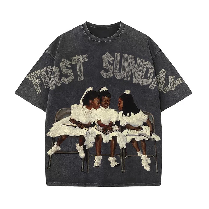 Retro First Sunday Faith Graphic Print Acid Washed T-Shirt
