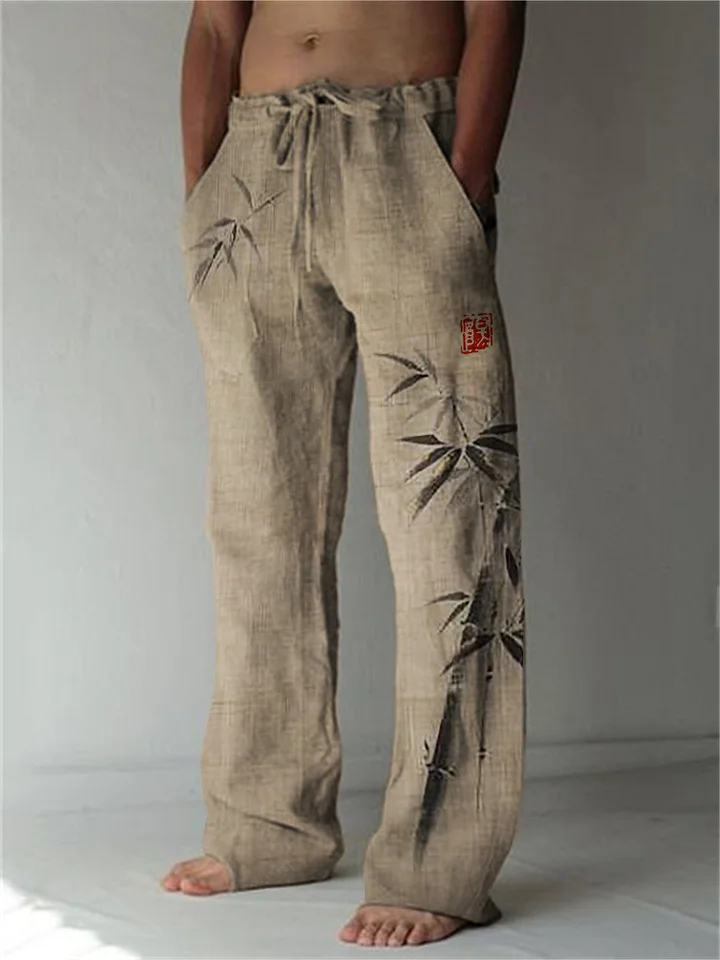 Simple Bamboo Japanese Art Linen Blend Casual Pants