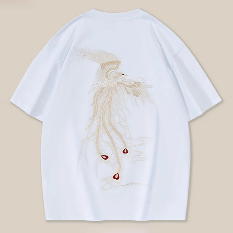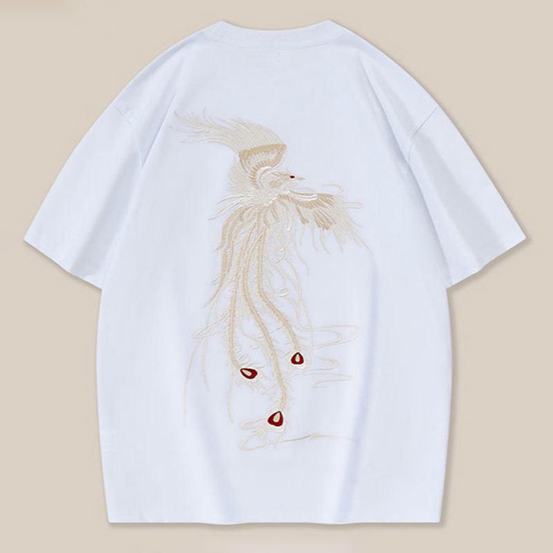 Trendy Phoenix Embroidered Cotton Loose T-shirt
