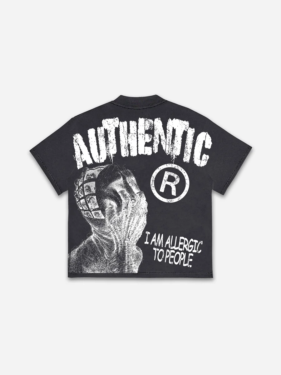 Vintage I Am Allergic To People Graphics Print Cotton T-shirt