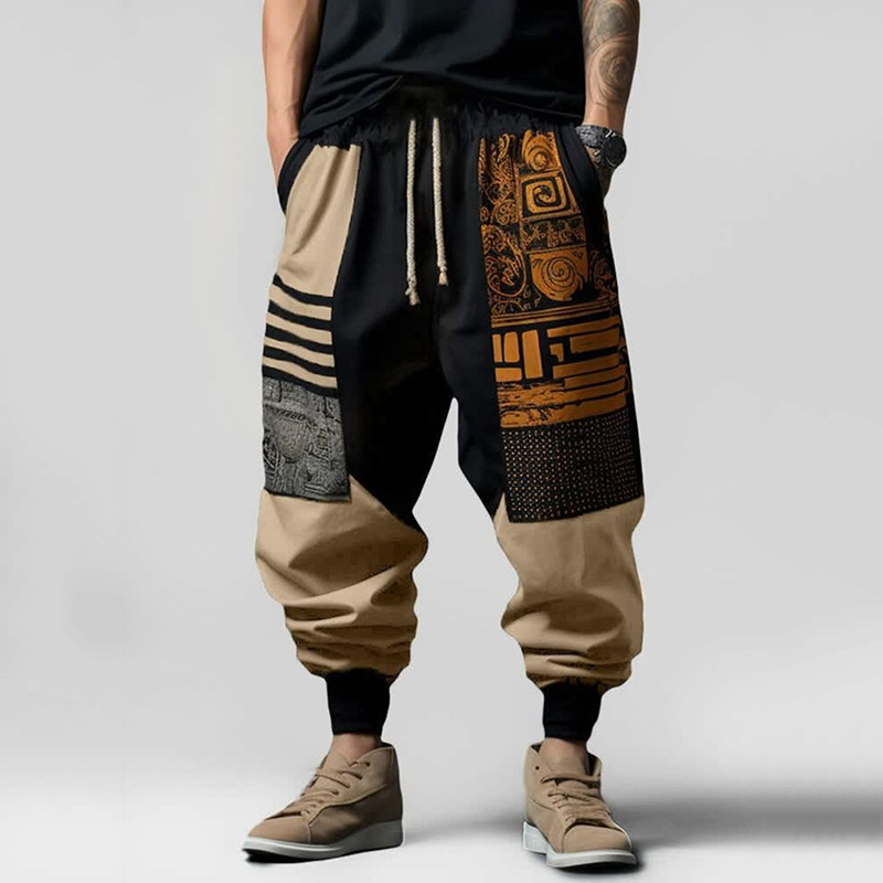Vintage Japanese Art Geo Pattern Casual Loose Drawstring Waist Pants